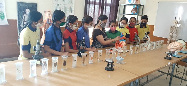 The Biology Lab has a projector, electronic weighing machines, temperature control, water baths and high spin centrifugation machines. There is a well-developed display area with various models, specimens, charts and a life-size skeleton.